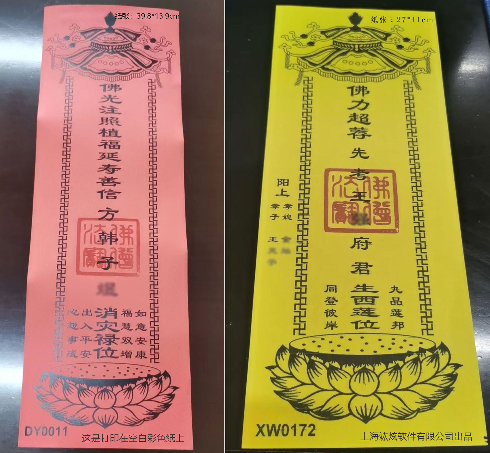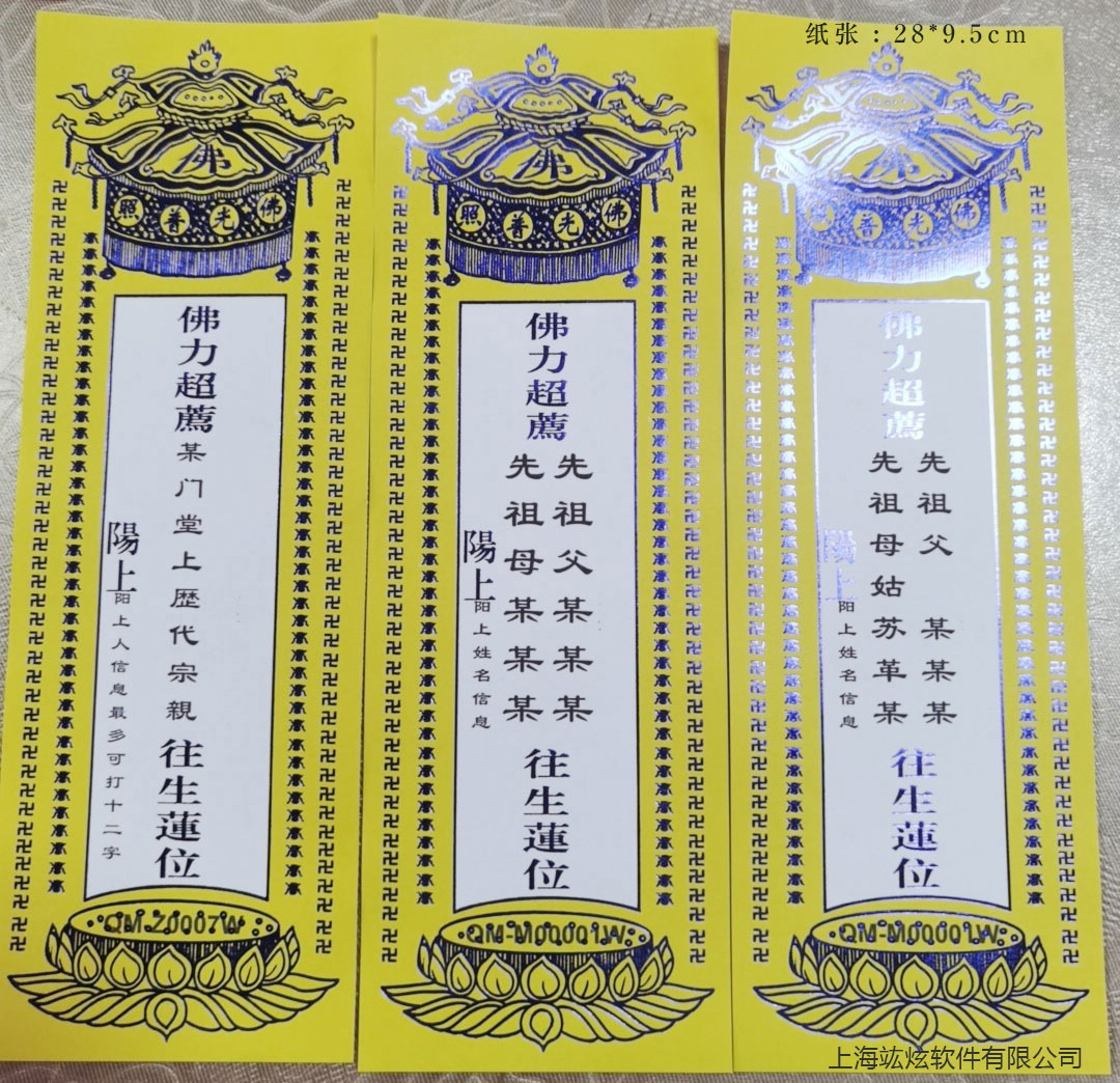竑炫寺院牌位打印软件2023版升级更新上线。更新后的软件按字数自动选择模板打印,实现不同字数都会按牌位打印区域自动以美观效果打印,同时增加了牌位数据导入和导出功能,可以将其他平台上的数据直接导入到打印系统中进行打印。系统可打印在印刷好的牌位纸张上,也可直接打印在空白彩纸上,满足各寺院不同需求。
